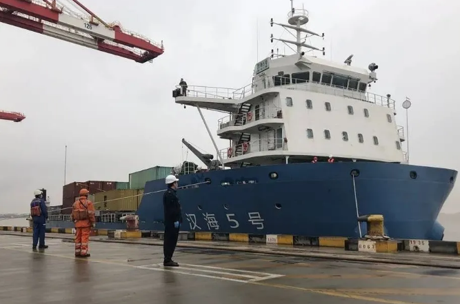 4月19日,伴隨著汽笛長鳴,由湖北建造的全國內河最先進、裝載量最大的集裝箱船“漢海5號”輪返航歸來,平穩靠泊武漢港陽邏港區二期碼頭。“漢海5號”輪自2月底首航以來,運輸量穩步增長。
