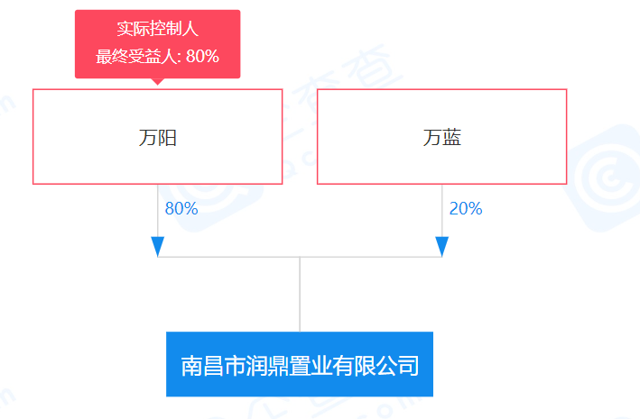 據企查查顯示,南昌市潤鼎置業有限公司成立于2020年4月9日,法定代表人萬園根,注冊資本1000萬元人民幣,位于江西省南昌市南昌高新技術產業開發區紫陽大道紫鑫商務廣場1號樓,萬陽持股80%擔任,萬藍持股20%。