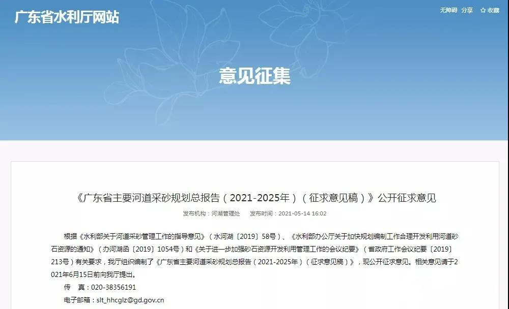 為加強河湖水域保護,強化河道采砂活動監管,指導新一輪河道采砂依法、科學、有序地開展。近日,廣東省水利發布了《廣東省主要河道采砂規劃總報告(2021-2025年)(征求意見稿)》(下稱《規劃》),面向社會公開征求意見。