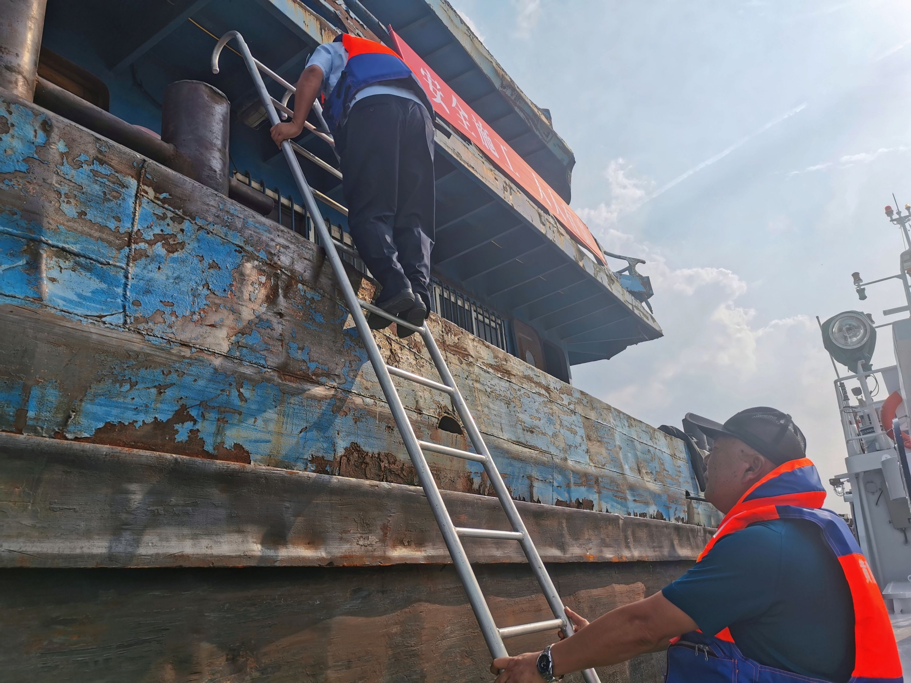 執法人員登船檢查。 長江日報記者余金蘭 攝