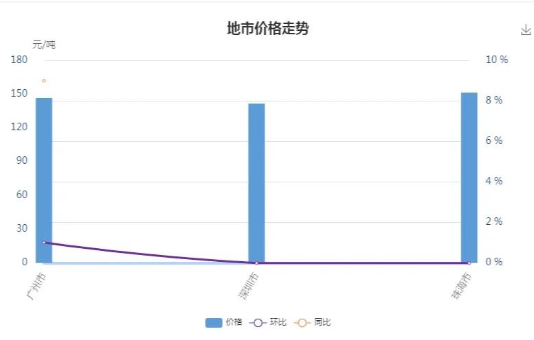 5月份,中砂:珠海市(價格為:151.31元/噸),廣州市(價格為:146.51元/噸),深圳市(價格為:141.55元/噸),價格較高;環比上個月,廣州市(漲幅為1.01%),價格漲幅較高;同比去年同期,廣州市(漲幅為8.99%),價格漲幅較高;碎石20:珠海市(價格為:134.73元/噸),深圳市(價格為:123.98元/噸),廣州市(價格為:123.50元/噸),價格較高;環比上個月,廣州市(漲幅為1.69%),價格漲幅較高;同比去年同期,廣州市(漲幅為2.94%),價格漲幅較高;見下圖
