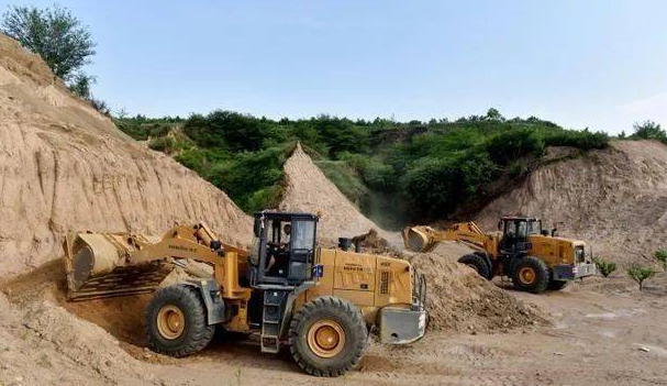 2021年6月23日,在河北省張家口市宣化區賈家營鎮大灣村北廢棄礦山生態修復項目工地,機械在平整土地。