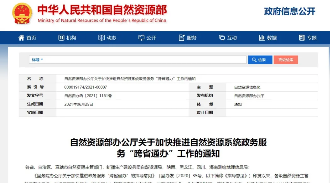 《通知》指出,自然資源系統“跨省通辦”政務服務事項原則上均采用“全程網辦”業務模式。