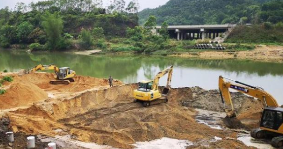 圖為防城港市非法砂場清理整治現場。