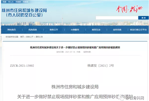 近日,為全面貫徹《中華人民共和國循環(huán)經(jīng)濟(jì)促進(jìn)法》、《湖南省散裝水泥條例》,進(jìn)一步節(jié)約資源,保護(hù)環(huán)境,促進(jìn)節(jié)能減排,提高建設(shè)質(zhì)量和文明施工水平,株洲市住房和城鄉(xiāng)建設(shè)局發(fā)布《關(guān)于進(jìn)一步做好禁止現(xiàn)場攪拌砂漿和推廣應(yīng)用預(yù)拌砂漿的通知》(以下簡稱《通知》)。