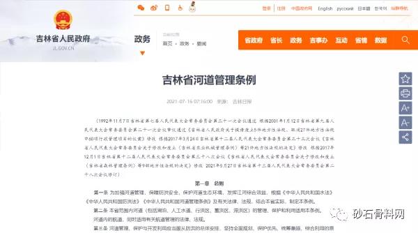 近日,吉林省人民政府官網發布吉林省第十三屆人民代表大會常務委員會第二十八次會議修訂的《吉林省河道管理條例》。《條例》分為總則、河道管理與保護、河道開發與利用、河道清障、河道采砂管理、河道采砂管理、附則7大板塊。《條例》自公布之日起實施。