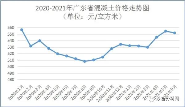 2021年上半年全省各區域水泥價格以升為主,其中粵東地區漲幅明顯,全省水泥購進均價為每噸556元,環比上升6.83%,同比上升2.29%。其中,粵東、珠三角和粵北地區水泥均價分別為每噸545元、580元和525元,環比分別上升19.63%、10.04%和2.01%,同比分別上升21.03%、8.78%和下降6.92%;粵西地區水泥均價為每噸492元,環比下降2.29%,同比下降6.43%。混凝土價格總體上行,平均批發價為每立方米541元,環比上升4.43%,同比上升1.5%。