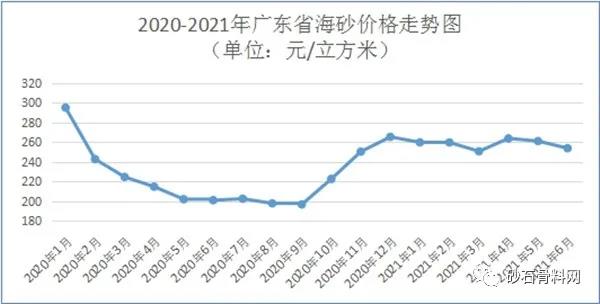 2021年上半年全省珠三角地區海砂(淡化處理)價格升幅較大,平均購進價為每立方米267元,環比上升20.12%,同比上升21.44%。