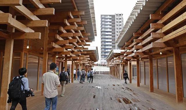 奧運(yùn)村廣場(chǎng)的建筑使用可循環(huán)利用的木材來(lái)建造,共“租借”了北海道、九州等日本63個(gè)自治體約4萬(wàn)根日本產(chǎn)木材。