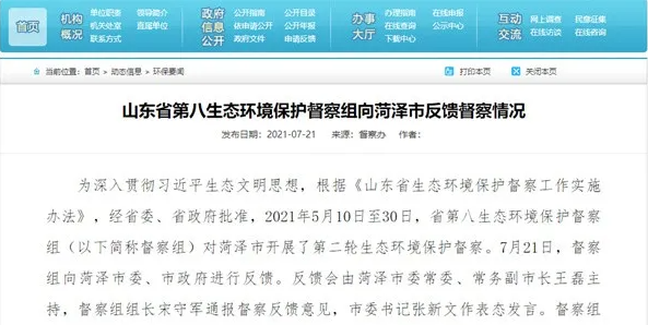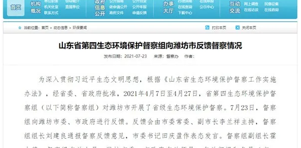 為深入貫徹習近平生態文明思想,根據《山東省生態環境保護督察工作實施辦法》,經山東省委、省政府批準,近期,山東省第一至第八生態環境保護督察組(以下簡稱督察組)對山東省臨沂市、濱州市、菏澤市、東營市、濰坊市、泰安市等13市開展了第二輪生態環境保護督察。