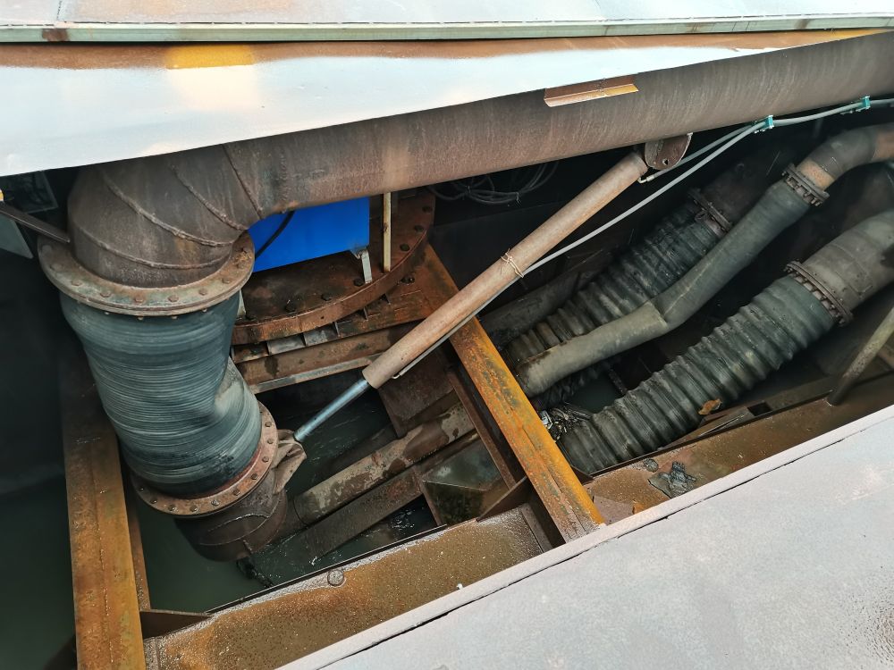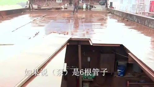 記者在長江上見到了這艘由小型運輸船改裝而成的涉案“隱形”采砂船,發現其抽砂泵隱藏在船艙內,只有在非法采砂作業時才將抽砂管安裝起來。