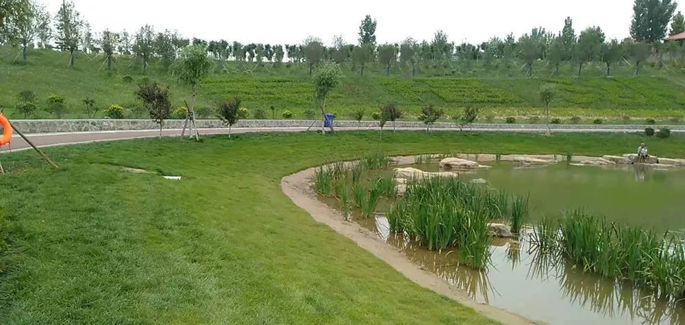 無梁山地公園總面積近2000畝,是一座傍山而建、環坡而上的森林公園,它充分利用臥龍山遺留的7處大型廢棄礦坑,采用階梯式設計理念,通過土地平整、客土回填等措施,累計修建健康步道8000余米,栽植各類果樹、花卉苗木10余萬株,并建成了蓄水量約2萬立方米的“幸福湖”水系工程,實現了荒山披綠、植被再生,曾經的廢棄