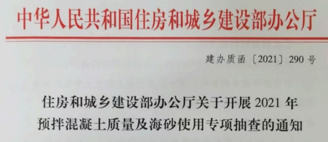 近日,住建部發(fā)布關(guān)于開展2021預(yù)拌混凝土質(zhì)量及海砂使用專項(xiàng)抽查通知。