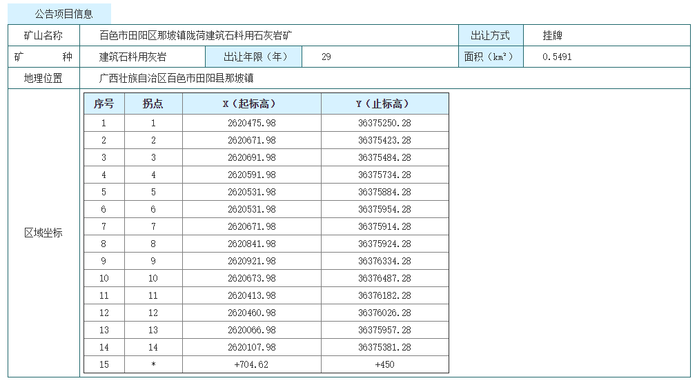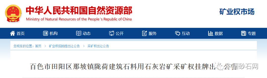 百色市田陽區那坡鎮隴荷建筑石料用石灰巖礦采礦權掛牌出讓公告