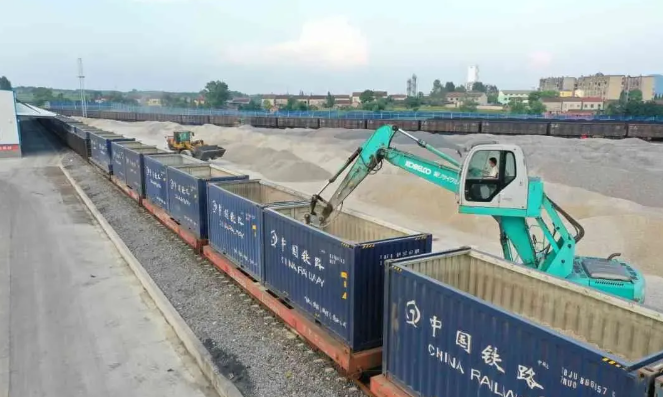 1152噸碎石裝進36個敞頂集裝箱開啟綠色運輸