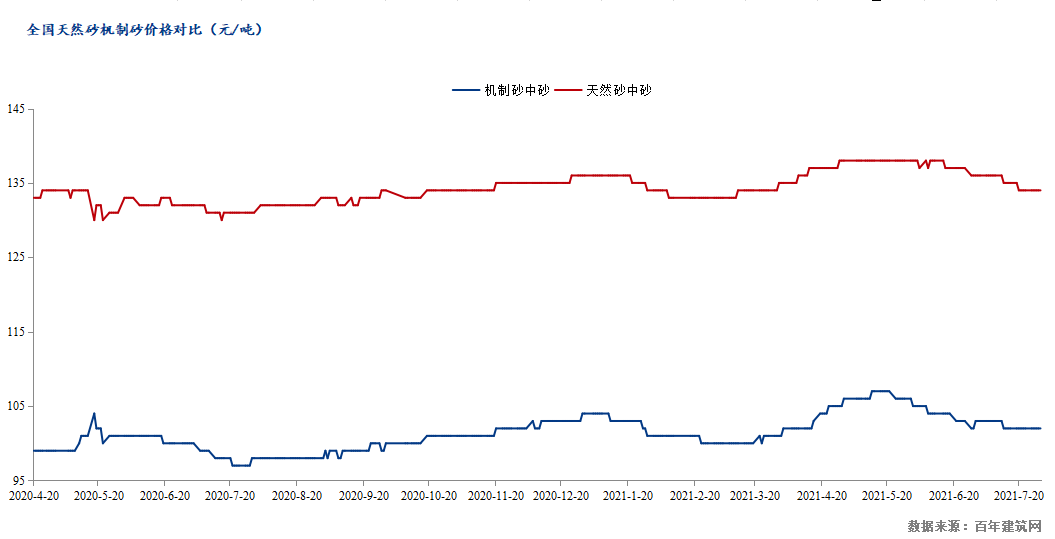 據(jù)統(tǒng)計(jì)自2020年起全國天然砂、機(jī)制砂價(jià)差明顯。與河砂相比,機(jī)制砂價(jià)格穩(wěn)定且性價(jià)比極高,具有較大的價(jià)格優(yōu)勢。天然砂開采過度容易造成河床下切,易發(fā)生坍塌。所以無論是從環(huán)保角度還是加工生產(chǎn)角度,機(jī)制砂都具有顯著地優(yōu)勢。