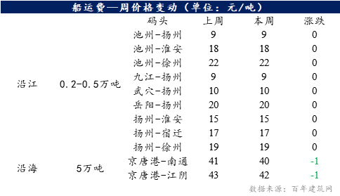 綜上所述:華東市場砂石價格弱勢持穩運行,需求市場緩慢恢復。長三角市場砂石需求不及預期,因此行情弱勢持穩。船運方面:本周江運價格平穩,海運價格小幅回落。據百年建筑網數據監測顯示,本周華東地區混凝土出貨量周環比上升4.62%。供應端:“兩湖砂”受公共衛生事件及水位上漲等因素影響價格或將上漲,機制砂和碎石受山東、湖北、江西等地礦山開采受限影響,總體而言華東市場砂石價格短期有推漲計劃。