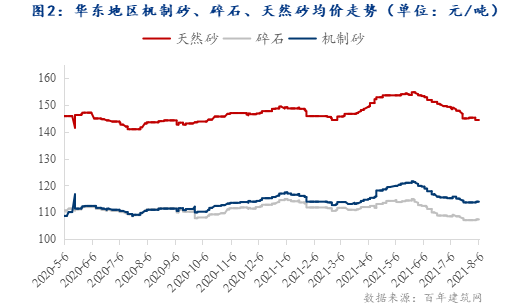 二、華東地區重點市場機制砂、碎石、天然砂價格走勢分析