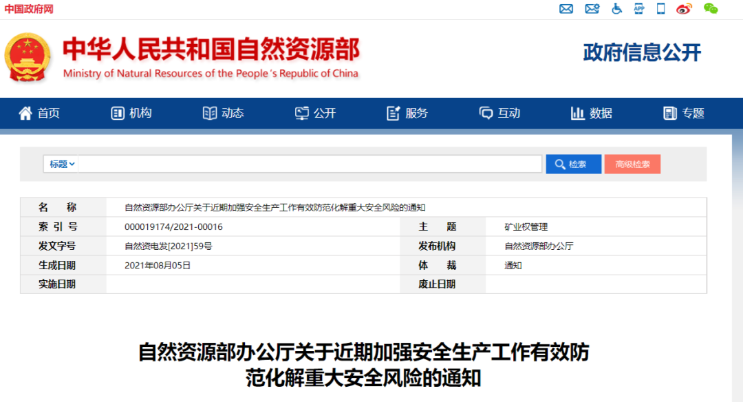 近日,自然資源部辦公廳發布關于近期加強安全生產工作有效防范化解重大安全風險的通知。