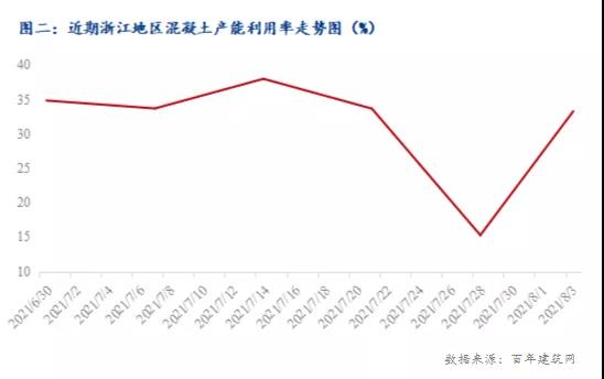 混凝土運轉率上升:據百年建筑網調研數據顯示,2021年7月混凝土平均產能利用率為31.46%,截止8月5日,同比去年低2.9個百分點。因上周臺風“煙花”影響,浙江省9成攪拌站從25號開始停工停產,平均產能利用率下降至15.28%。而隨著臺風的結束,本周浙江地區產能利用率為33.29%,周環比上升18個百分點,月環比下降0.4個百分點。另外據百年建筑網調研浙江某攪拌站反饋:自臺風過后,攪拌站產量有所上升,日均出貨量在2500方左右。截至8月5日據百年建筑網調研得知,施工