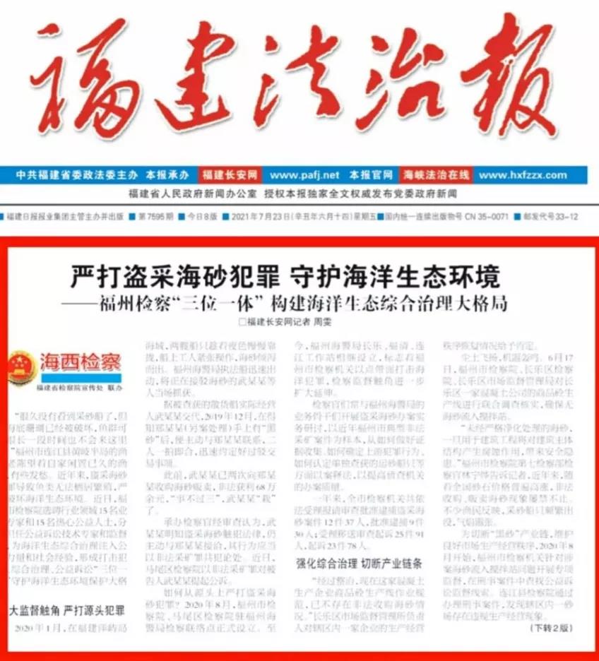如何從源頭上嚴打盜采海砂犯罪?2020年8月,福州市檢察院、馬尾區檢察院駐福州海警局檢察聯絡點正式設立。至今,福州海警局長樂、福清、連江工作站相繼設立,標志著福州市檢察機關以點帶面打擊海洋犯罪,檢察監督觸角進一步擴大延伸。