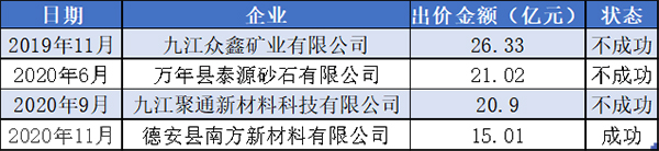 表4 江西省德安縣豐林白云嶺礦區建筑石料用灰巖礦競拍過程