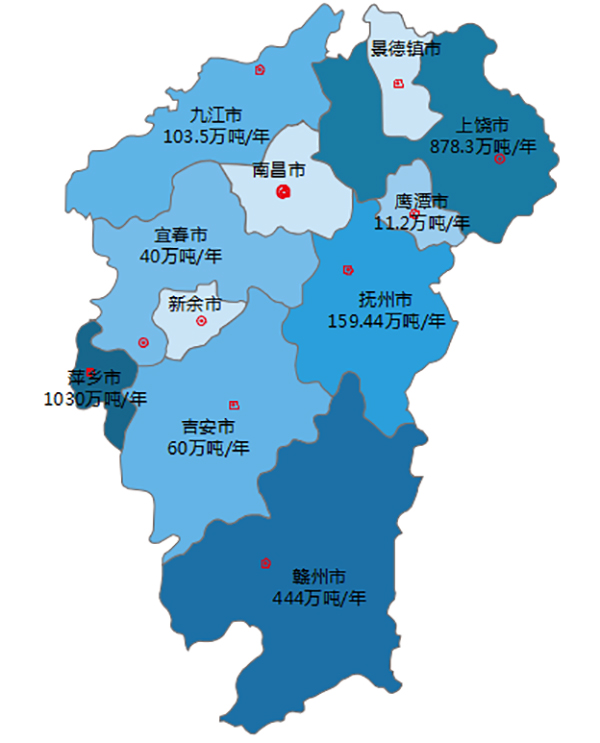 通過對上述已成交的20宗砂石類采礦權進行統計發現,萍鄉市新增產能最多,4宗采礦權均投產后將每年為萍鄉新增1030萬噸骨料產能;新增產能較多的地市還有上饒市、贛州市,這2個地市新增產能分別為878.3萬噸/年和444萬噸/年。除上述地市外,撫州市、九江市、吉安市、宜春市、鷹潭市這5個地市的新增產能分別為159.44萬噸/年、103.5萬噸/年、60萬噸/年、40萬噸/年和11.2萬噸/年。九江市區位優勢明顯,預計九江市上述5宗采礦權全部投產后,骨料產品沿江而下可供應長江中下游及長三角地區。