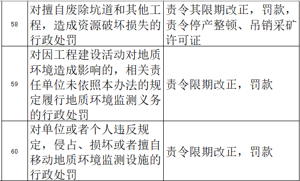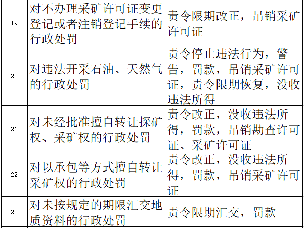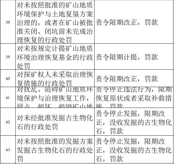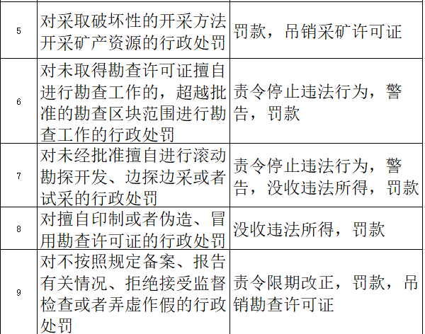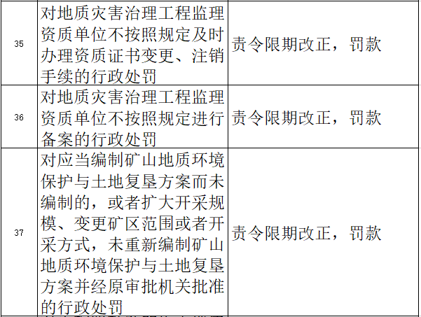 礦山地質環境保護與土地復墾方案而未編制的,或者擴大開采規模、變更礦區范圍或者開采方式,未重新編制礦山地質環境保護與土地復墾方案并經原審批機關批準的行政處罰等。