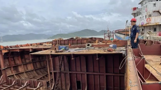近日,伴隨著吊機施工作業的“轟隆隆、轟隆隆”聲音,船舶駕駛臺被“斬首”截下,頃刻間,一艘萬噸級內河船舶的上層建筑已拆解完畢,貨艙和機艙外板的拆解工作也在熱火朝天地進行著。