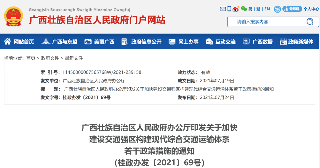 為加快建設交通強區,構建安全、便捷、高效、綠色、經濟的現代化綜合交通體系,結合廣西實際,制定本政策措施。