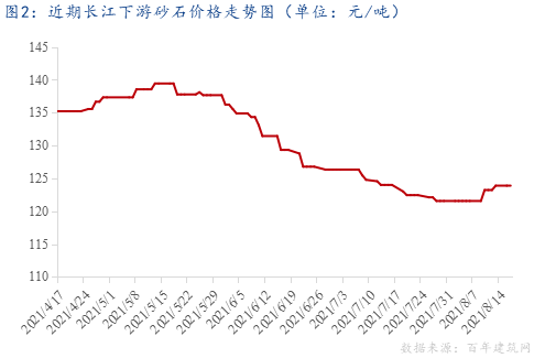 據統計數據顯示,今年長江下游砂石行情走勢為前高后低,截止8月18日,長江下游市場砂石平均價格124元/噸,較上周增長1元/噸,較7月18日價格持平。從數據可以看出:近期下游砂石價格大幅上漲難度較大,窄幅震蕩運行為主。