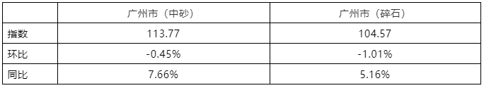 中砂和碎石地市指數漲跌情況
