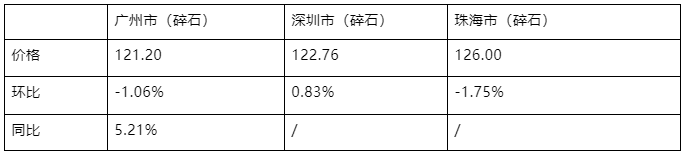 碎石重點地市價格走勢情況