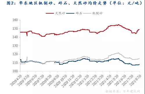 二、華東地區重點市場機制砂、碎石、天然砂價格走勢分析