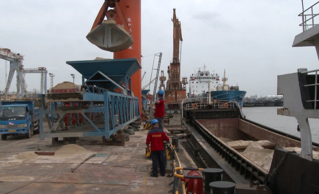 經進一步工作,在太倉港準備收貨的犯罪嫌疑人楊某投案自首。經審訊,徐某、梁某等人在福建省附近海域非法盜采、裝載海砂后,運至江蘇省太倉港販賣給楊某和樊某,再進一步處理銷售。