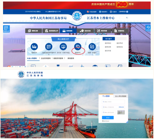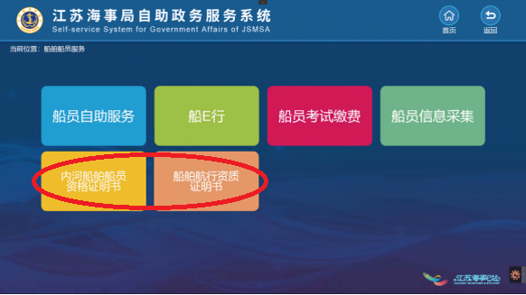 江蘇海事局門戶網站(js.msa.gov.cn),進入“網上政務大廳”的“智慧政務”欄目申請“多證合一”《證明書》;