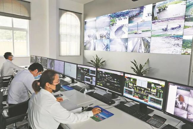 工作人員在露天礦山無人運輸系統云控平臺智能調度中心進行實時管理