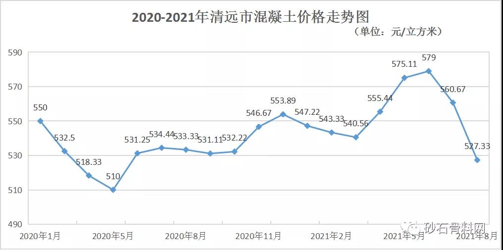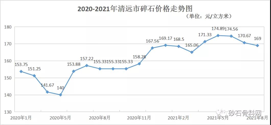 經對市場巡視了解,今年4、5月份,受國內經濟復蘇、基建擴張,以及環保管控措施進一步加強等多方面因素影響,清遠市建材價格出現一波上漲行情。進入6月份后,砂石、水泥等部分建材價格開始陸續回落,7、8月份,在高溫多雨天氣影響下,施工項目進度放緩,砂石、水泥、混凝土等各類建材進入季節性需求淡季,建材價格呈現出全面連續下降走勢。
