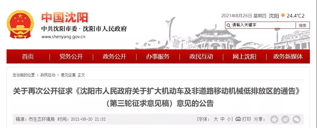 日前,《沈陽市人民政府關于擴大機動車及非道路移動機械低排放區的通告(第三輪征求意見稿)》,表示:自2022年2月1日起,國三中、重柴油車三環內全天禁行。