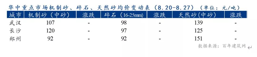 本周華中地區重點城市砂石價格暫時持穩。各區域市場表現: