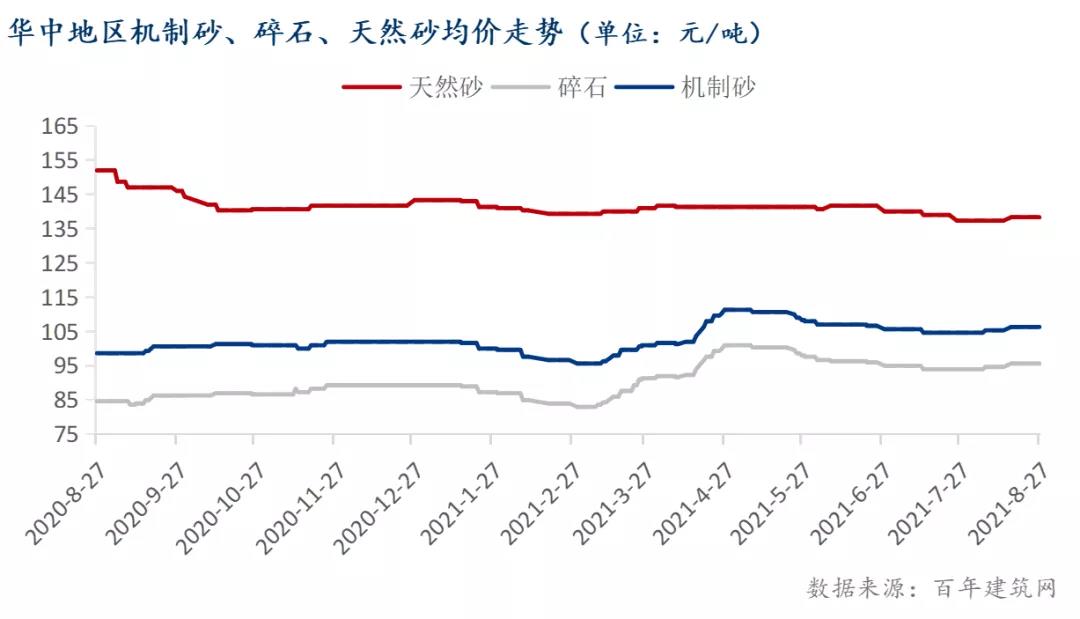 二、華中地區重點市場機制砂、碎石、天然砂價格走勢分析
