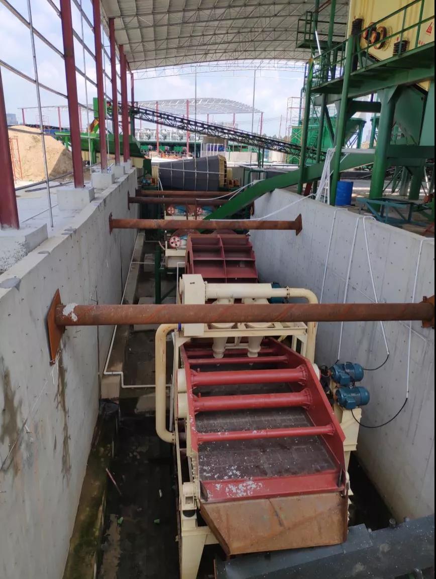 洗砂機、螺旋洗砂機、細砂回收一體機、雙軸圓振動篩、滾筒篩等,將盾構尾料進行再次利用:石料經過破碎篩分最終產出高品質機制砂,廢泥經過洗砂模塊將砂資源進行回收,泥漿經過壓濾進行環保處理;整個項目封閉式無污染,達到環保要求。