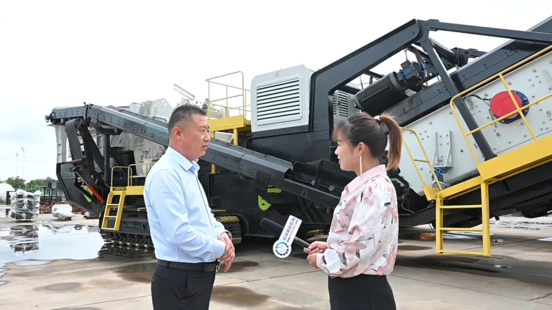 萬仕衡通總經(jīng)理焦頌華在移動破碎篩分站前接受采訪