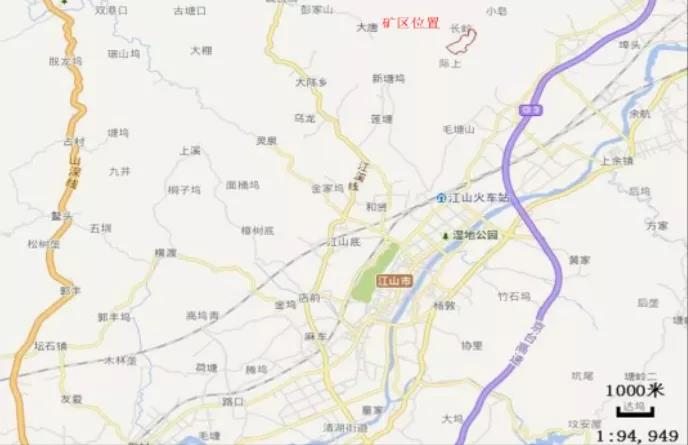 2、礦區位置:江山市四都鎮四都村、前嶺村五家嶺自然村、上余鎮上余村