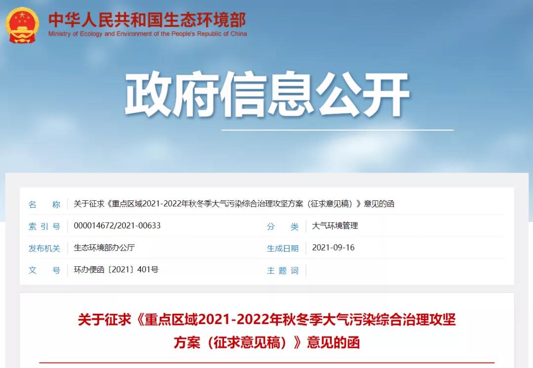 關(guān)于征求《重點(diǎn)區(qū)域2021-2022年秋冬季大氣污染綜合治理攻堅(jiān)方案(征求意見稿)》意見的函