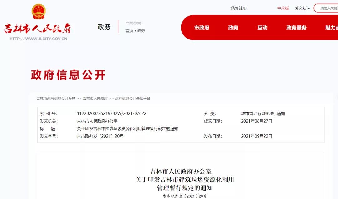 吉林市人民政府辦公室關于印發吉林市建筑垃圾資源化利用管理暫行規定的通知