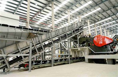 皮帶機(jī)、66個(gè)溜槽等復(fù)雜設(shè)備,將部分分揀后的可利用材料制成道旁磚、路面磚、墻體磚等。
