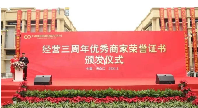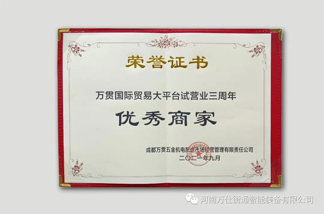 自入駐萬貫國際貿易大平臺三年以來憑借優秀的服務和突出的業績,萬仕衡通四川服務中心在眾多商家中脫穎而出,于2021年9月獲得了優秀商家的榮譽稱號!