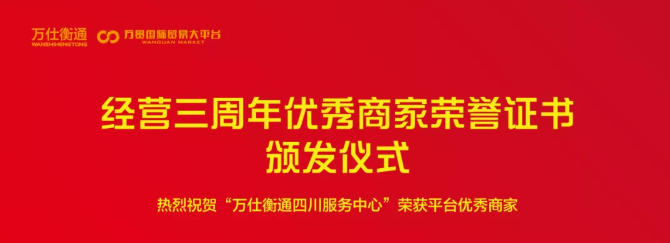 熱烈祝賀萬仕衡通四川服務中心獲得萬貫國際貿易大平臺優秀商家稱號!