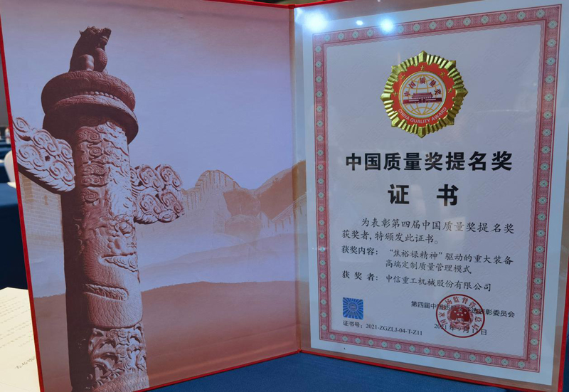 2021第四屆中國質量大會由國家市場監督管理總局、浙江省人民政府和杭州市人民政府共同舉辦,主題為“質量、數字、綠色、融合”。今年的中國質量獎參評范圍廣泛、參評組織數量為歷屆之最,全國共有696家組織參評。經過材料評審、陳述答辯、現場評審、審議投票等一系列客觀、公平、公正的評選程序,中信重工最終脫穎而出,獲得第四屆中國質量獎提名獎。這是公司繼2016年獲得第二屆中國質量獎提名獎以來,再次斬獲提名獎殊榮,彰顯了公司的實力地位和品牌影響力。